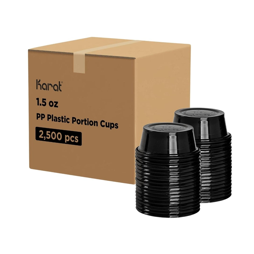 Product form KARAT BLACK PORTION CUP 1.5 OZ. 2500/CS. $29.99 Add to cart This item is a recurring or deferred purchase. By continuing, I agree to the cancellation policy and authorize you to charge my payment method at the prices, frequency and dates listed on this page until my order is fulfilled or I cancel, if permitted. Share with your friends Share WhatsApp Deel X Pin it Messenger Email